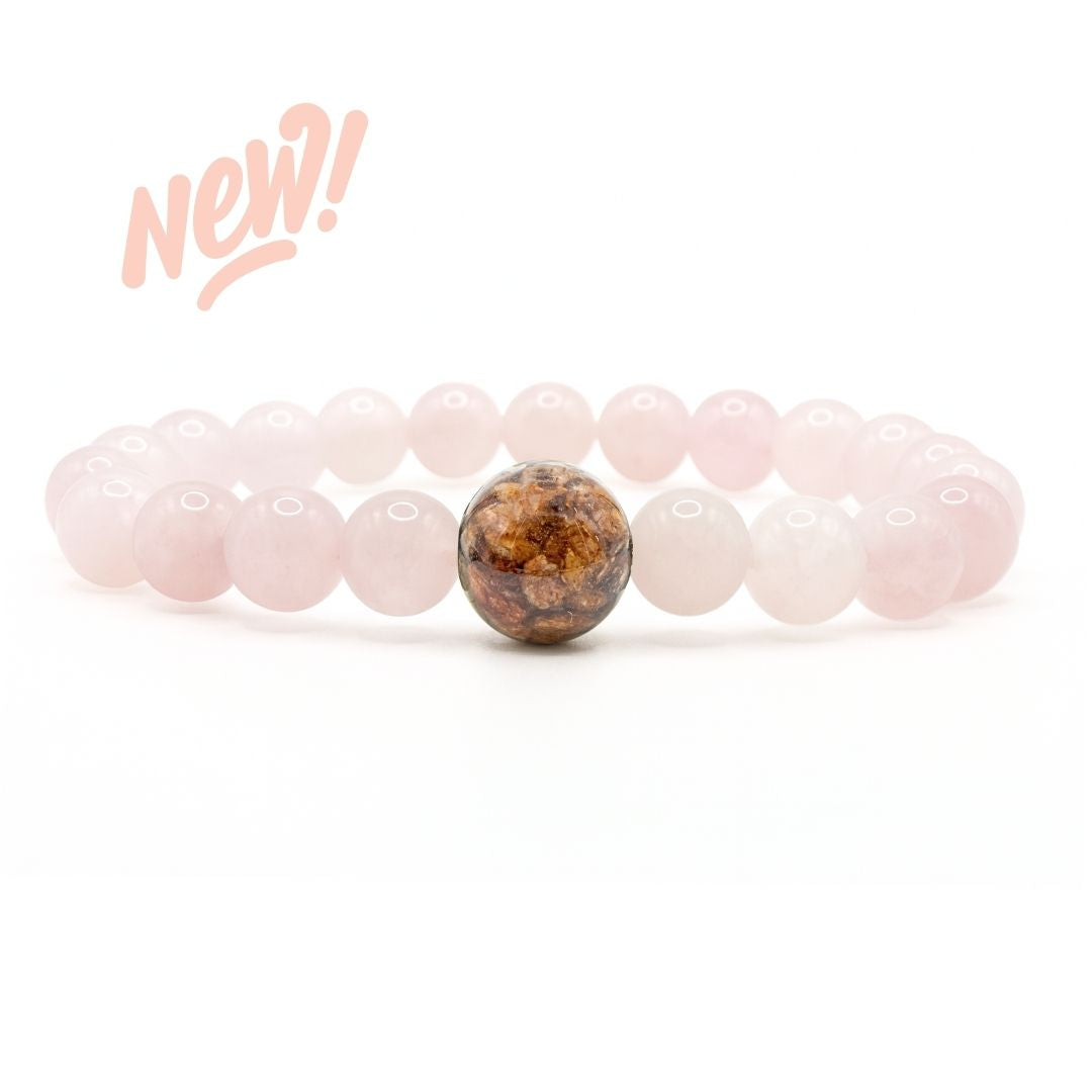 • Surrounding beads (8mm) made of natural Rose Quartz