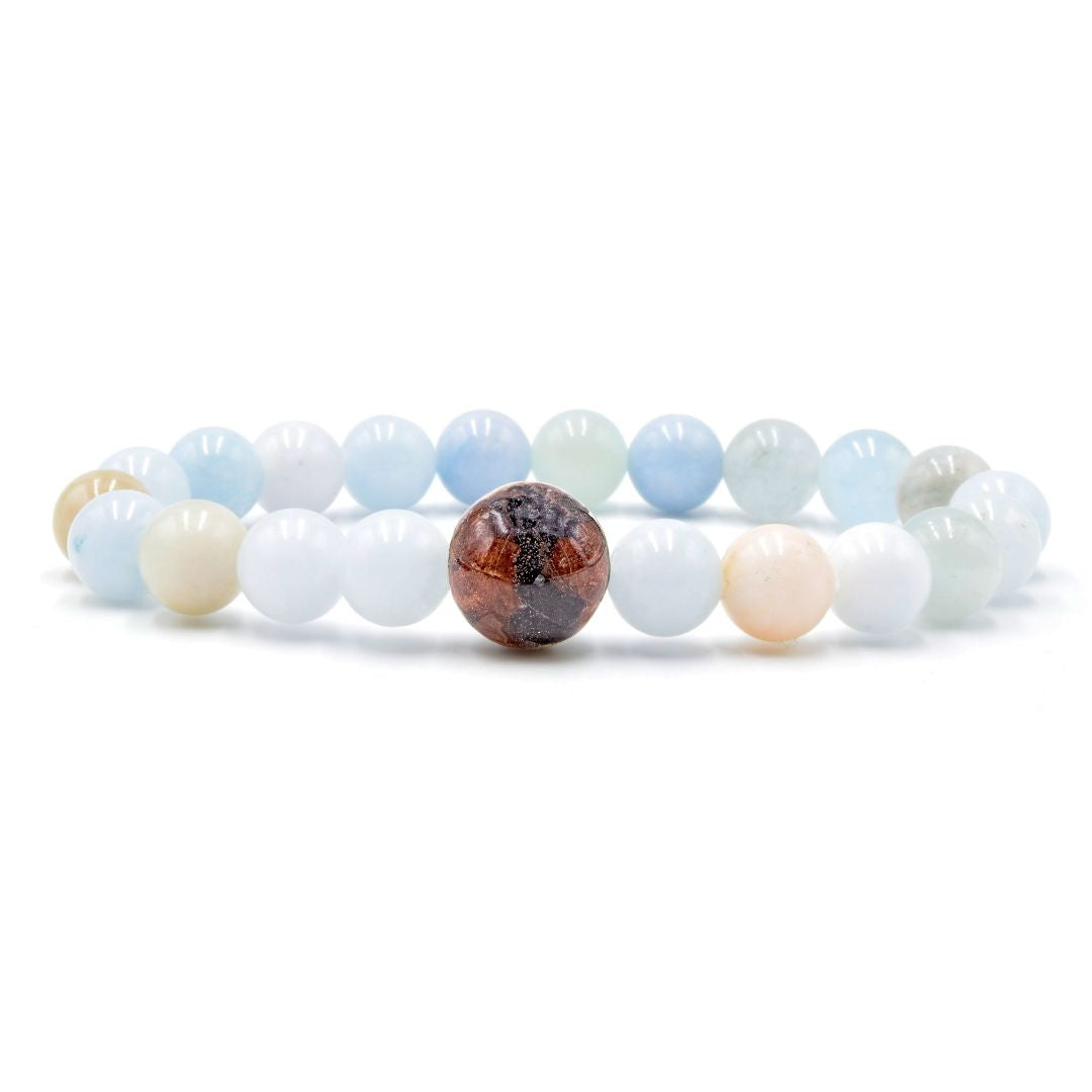 Each bracelet features a handcrafted "Earth Bead" made with coconut shells, clay and sea salt from the islands of Hawaii.