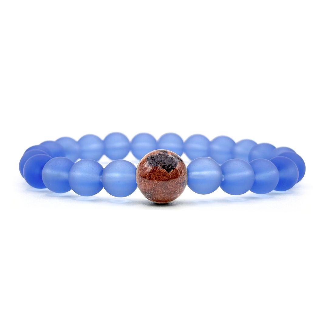 The larger “Earth Bead” of this bracelet contains real Pacific Ocean salt fused with activated charcoal made from coconut shells and red alae clay from the Hawaiian island of Kauai. Each Earth Bead is hand-crafted in our small shop in Michigan, a process which takes 50+ hours per bead. Each Earth Bead is literally one-of-a-kind.