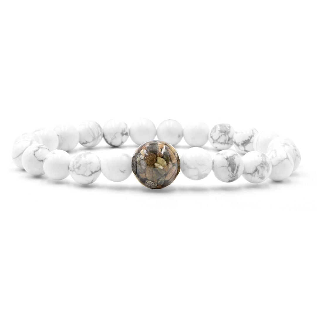 The larger “Earth Bead” of this bracelet contains stones collected by hand from throughout the state of Idaho. Each Earth Bead is hand-crafted in our small shop in Michigan, a process which takes 50+ hours per bead. Each Earth Bead is literally one-of-a-kind.