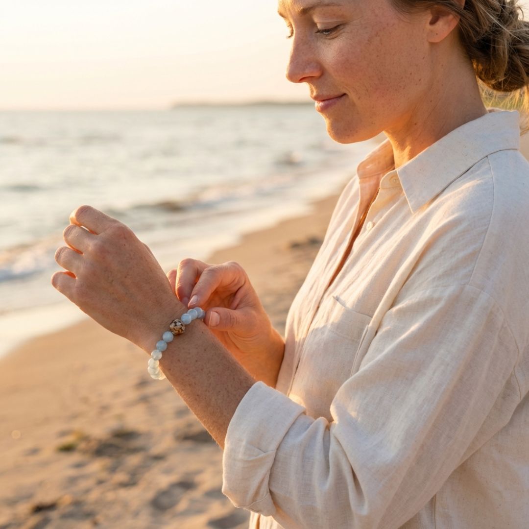 • Surrounding beads (8mm) made of natural Aquamarine stone*