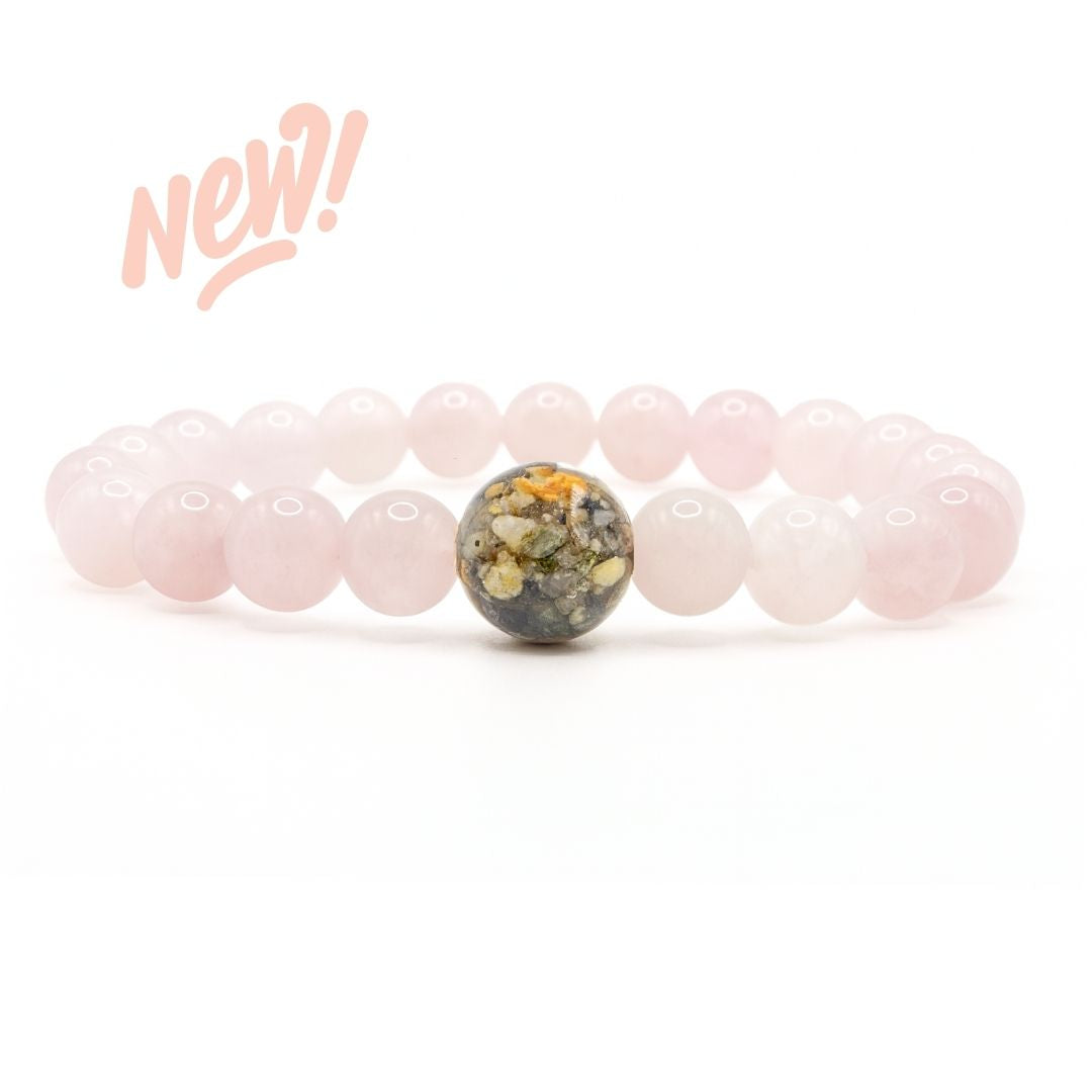 • Surrounding beads (8mm) made of natural Rose Quartz