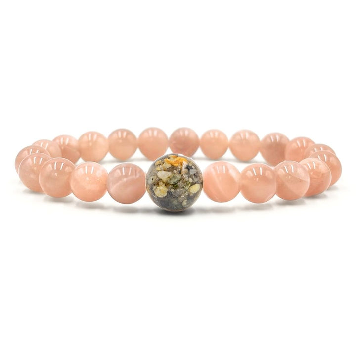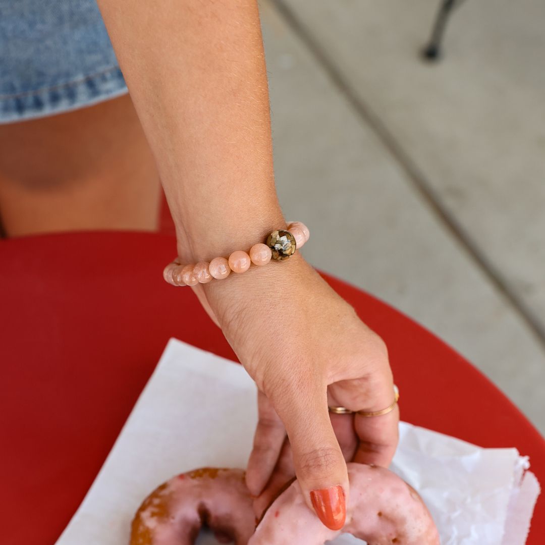The larger “Earth Bead” of this bracelet contains stones collected by hand from throughout the state of Maine. Each Earth Bead is hand-crafted in our small shop in Michigan, a process which takes 50+ hours per bead. Each Earth Bead is literally one-of-a-kind.