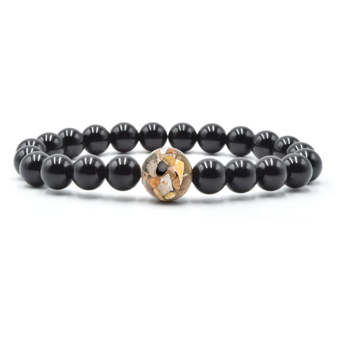 The larger “Earth Bead” of this bracelet contains stones collected by hand from throughout the state of Michigan. Each Earth Bead is hand-crafted in our small shop in Michigan, a process which takes 50+ hours per bead. Each Earth Bead is literally one-of-a-kind.