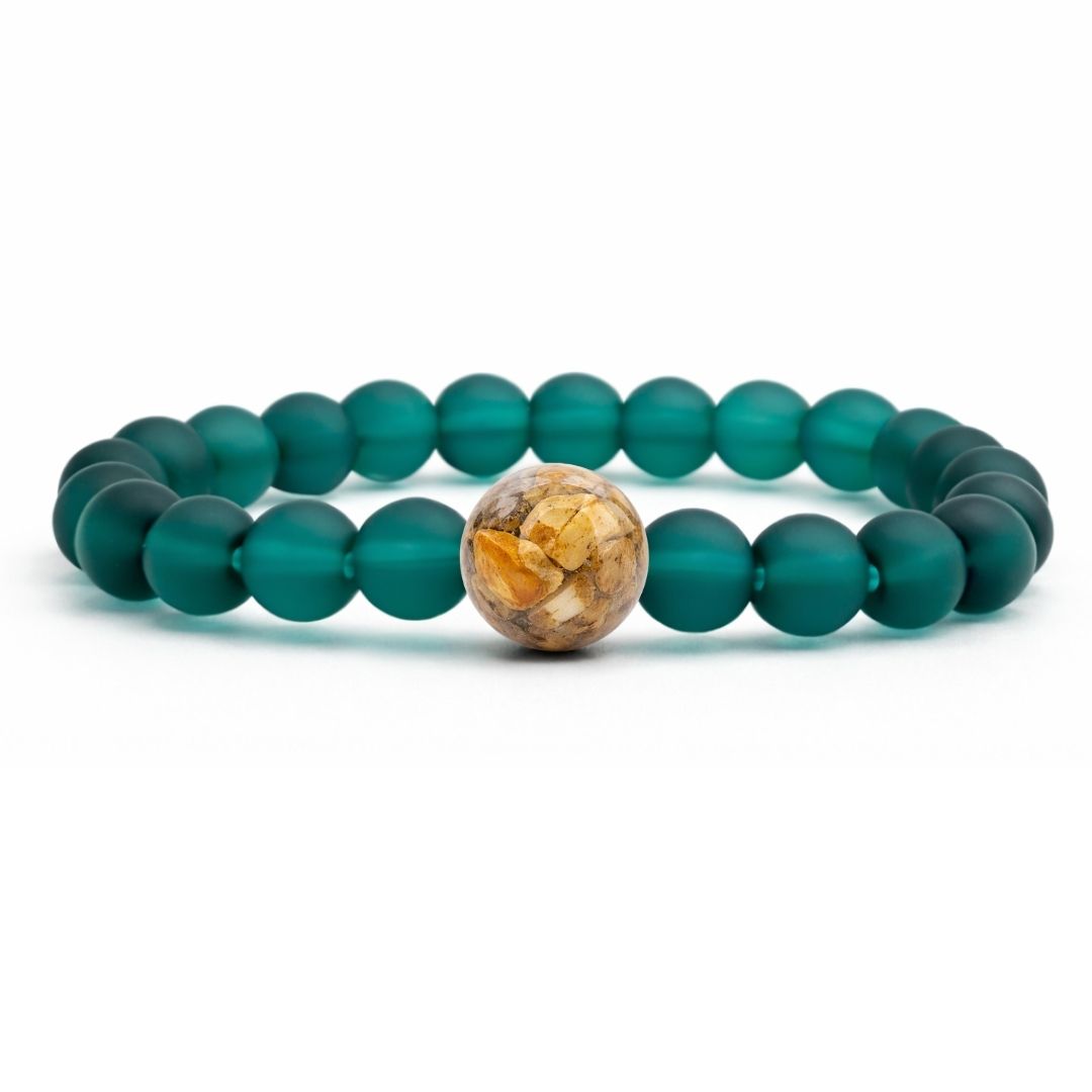 Every Homes Bracelet features an "Earth Bead," made by molding earth materials like stones, sand, shells, or ocean salt, with high quality resin. Each bead is then individually sanded and polished and prepped to be strung onto the bracelet.