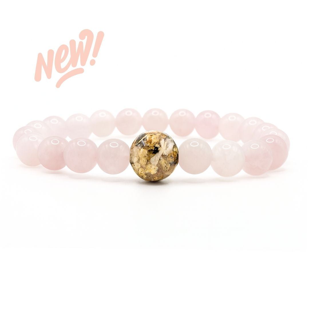 • Surrounding beads (8mm) made of natural Rose Quartz