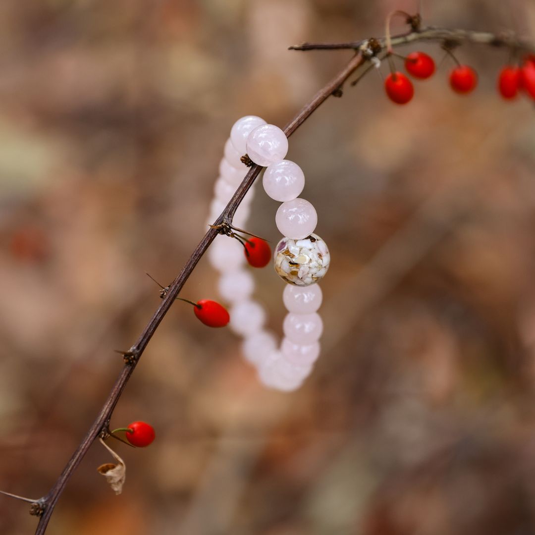 • Surrounding beads (8mm) made of natural Rose Quartz