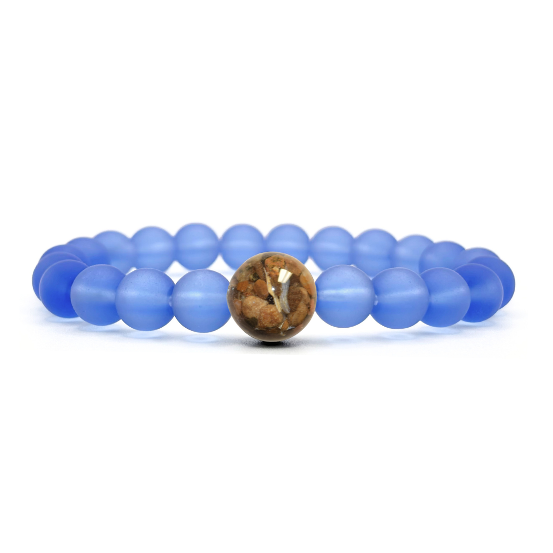 The larger “Earth Bead” of this bracelet contains stones collected by hand from throughout the state of Ohio. Each Earth Bead is hand-crafted in our small shop in Michigan, a process which takes 50+ hours per bead. Each Earth Bead is literally one-of-a-kind.