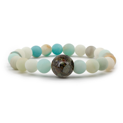 Each bracelet features a handcrafted "Earth Bead" made with stones from throughout the state of Oregon.