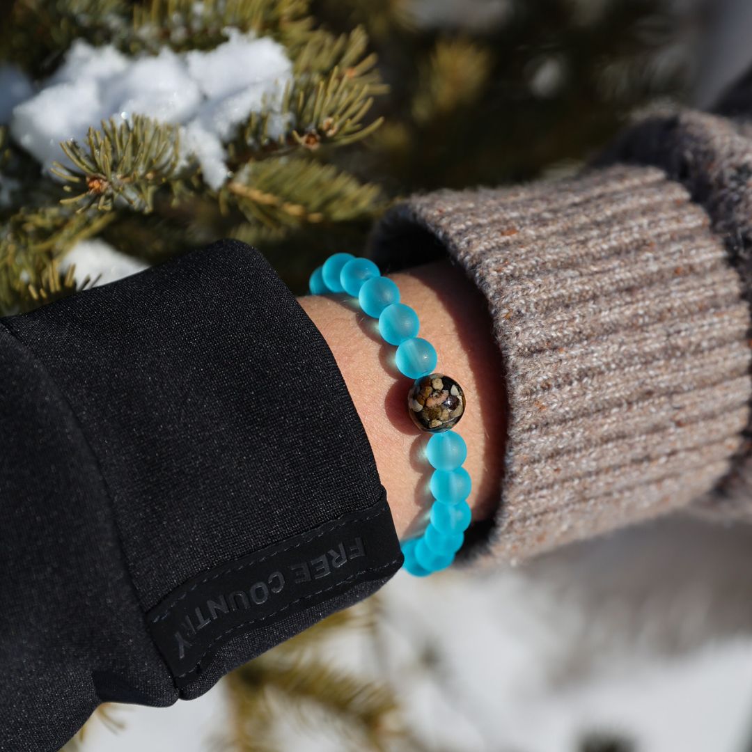 The larger “Earth Bead” of this bracelet contains stones collected by hand from throughout the state of Tennessee. Each Earth Bead is hand-crafted in our small shop in Michigan, a process which takes 50+ hours per bead. Each Earth Bead is literally one-of-a-kind.