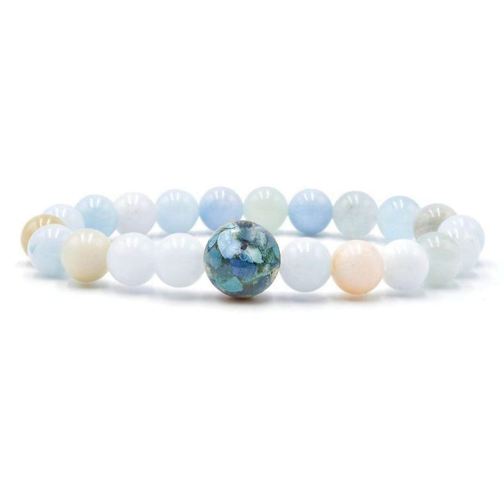 - Surrounding beads (8mm) made of natural Aquamarine stone