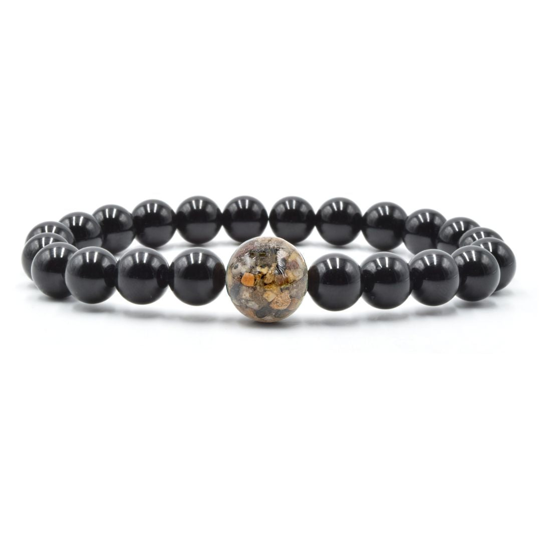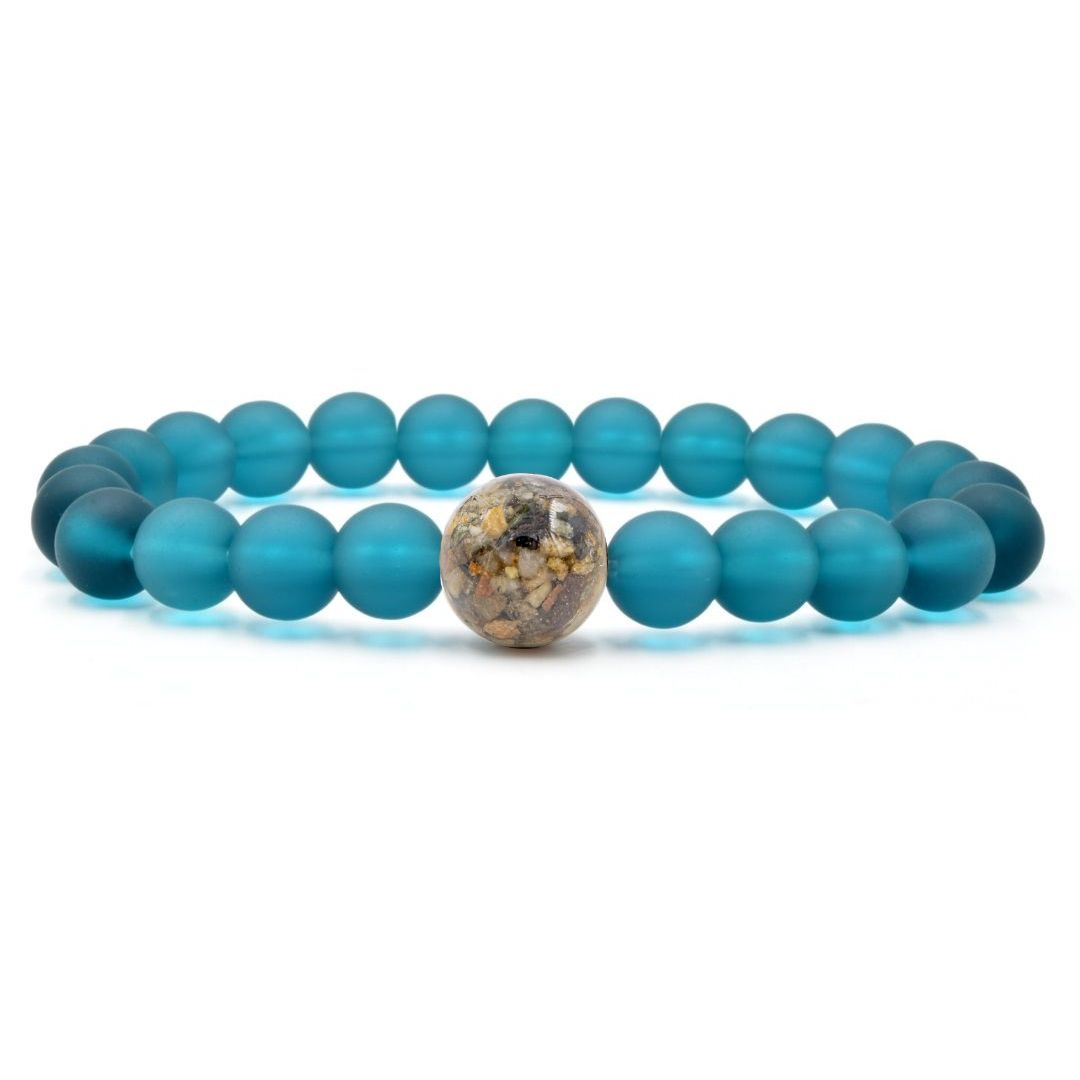 Every Homes Bracelet features an "Earth Bead," made by molding earth materials like stones, sand, shells, or ocean salt, with high quality resin. Each bead is then individually sanded by hand and polished with a double coat of resin for a strong and smooth finish.