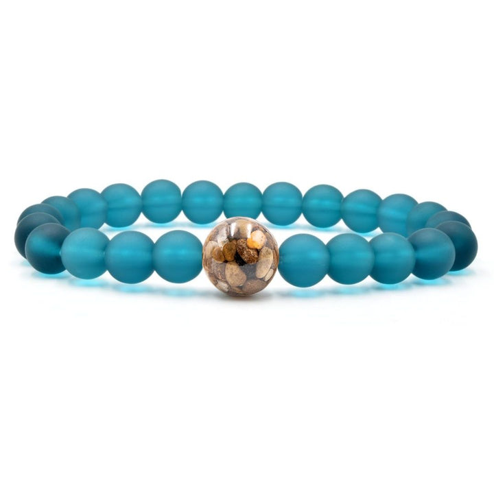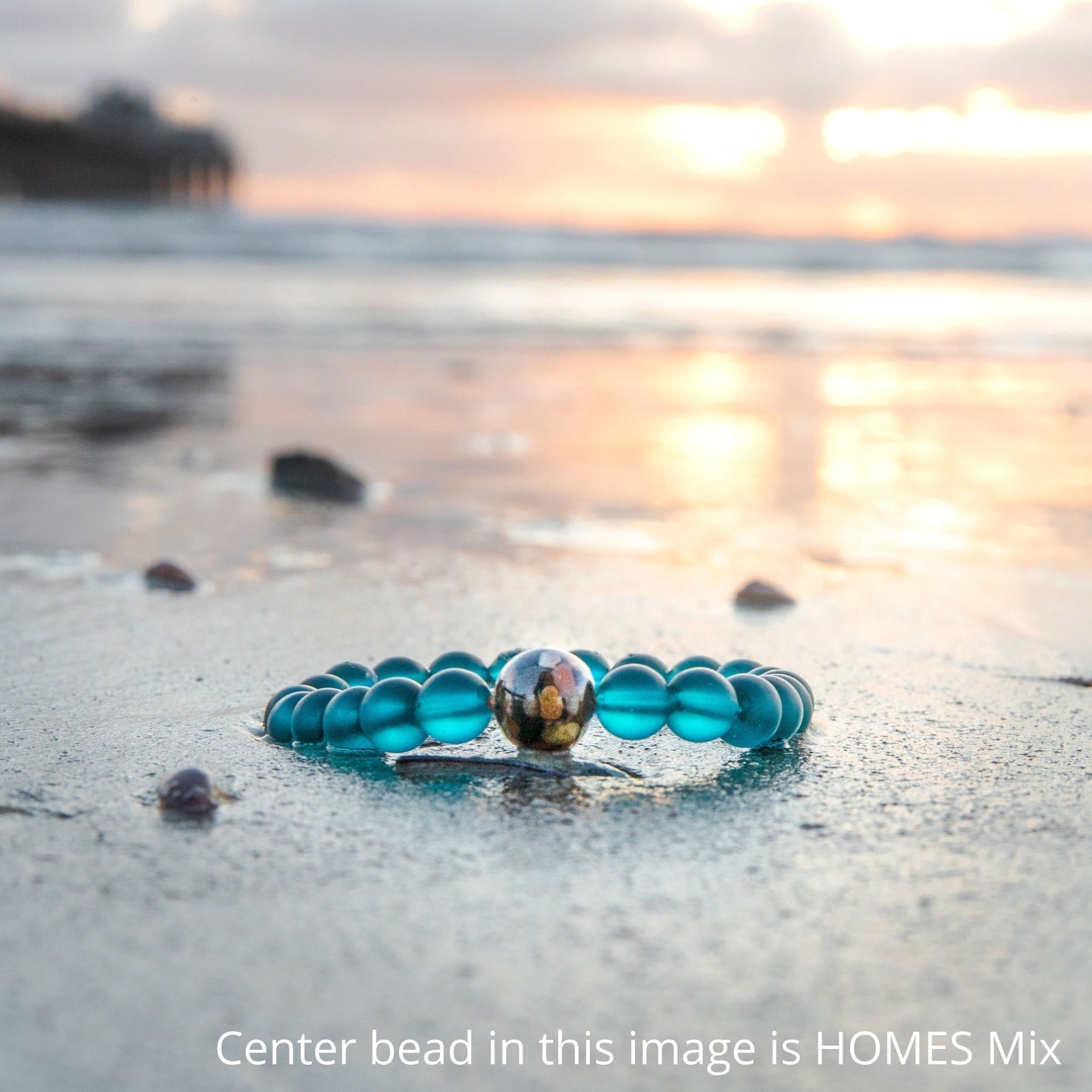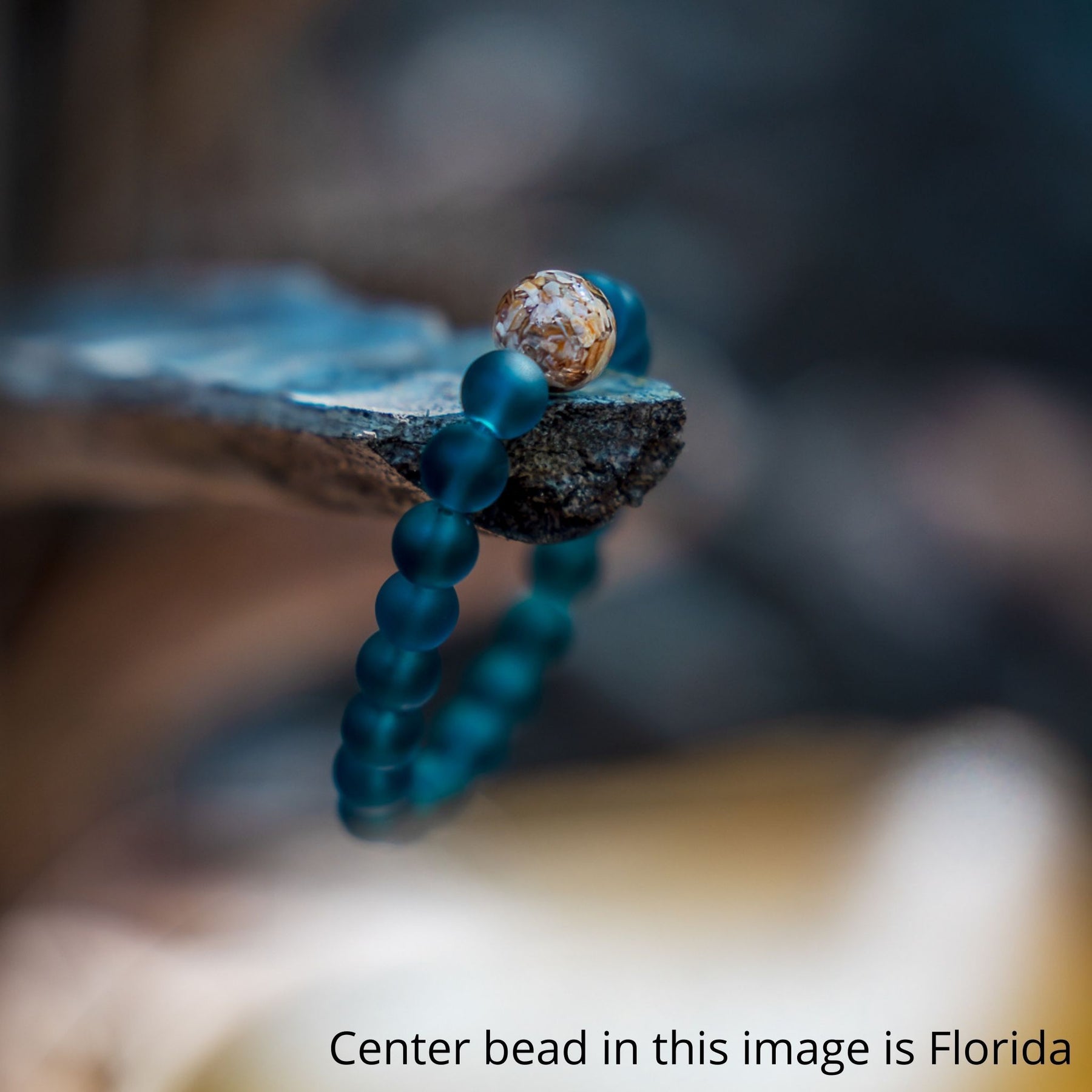 The larger “Earth Bead” of this bracelet contains stones collected by hand from throughout the state of Indiana. Each Earth Bead is hand-crafted in our small shop in Michigan, a process which takes 50+ hours per bead. Each Earth Bead is literally one-of-a-kind.