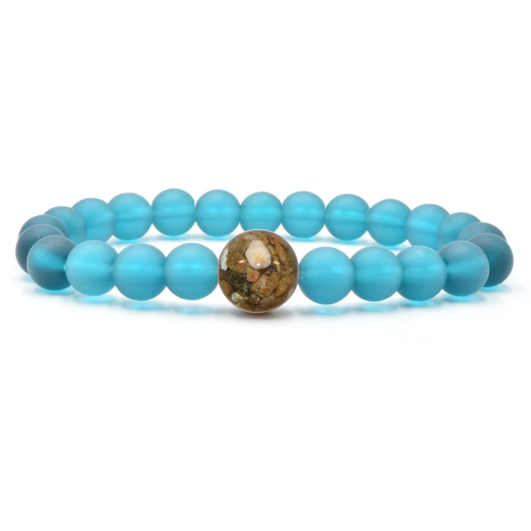 The Earth Bead on your bracelet will resemble the bead shown in the photo, but it is not the exact bead you will receive as each is unique.