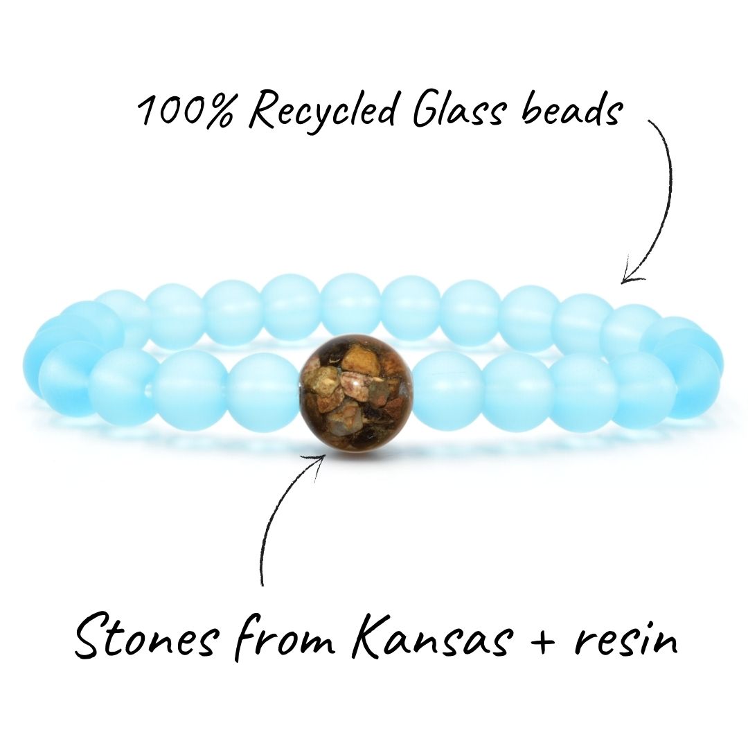 Each bracelet in our Kansas Collection features a handcrafted "Earth Bead" made with stones collected from throughout the state of Kansas.