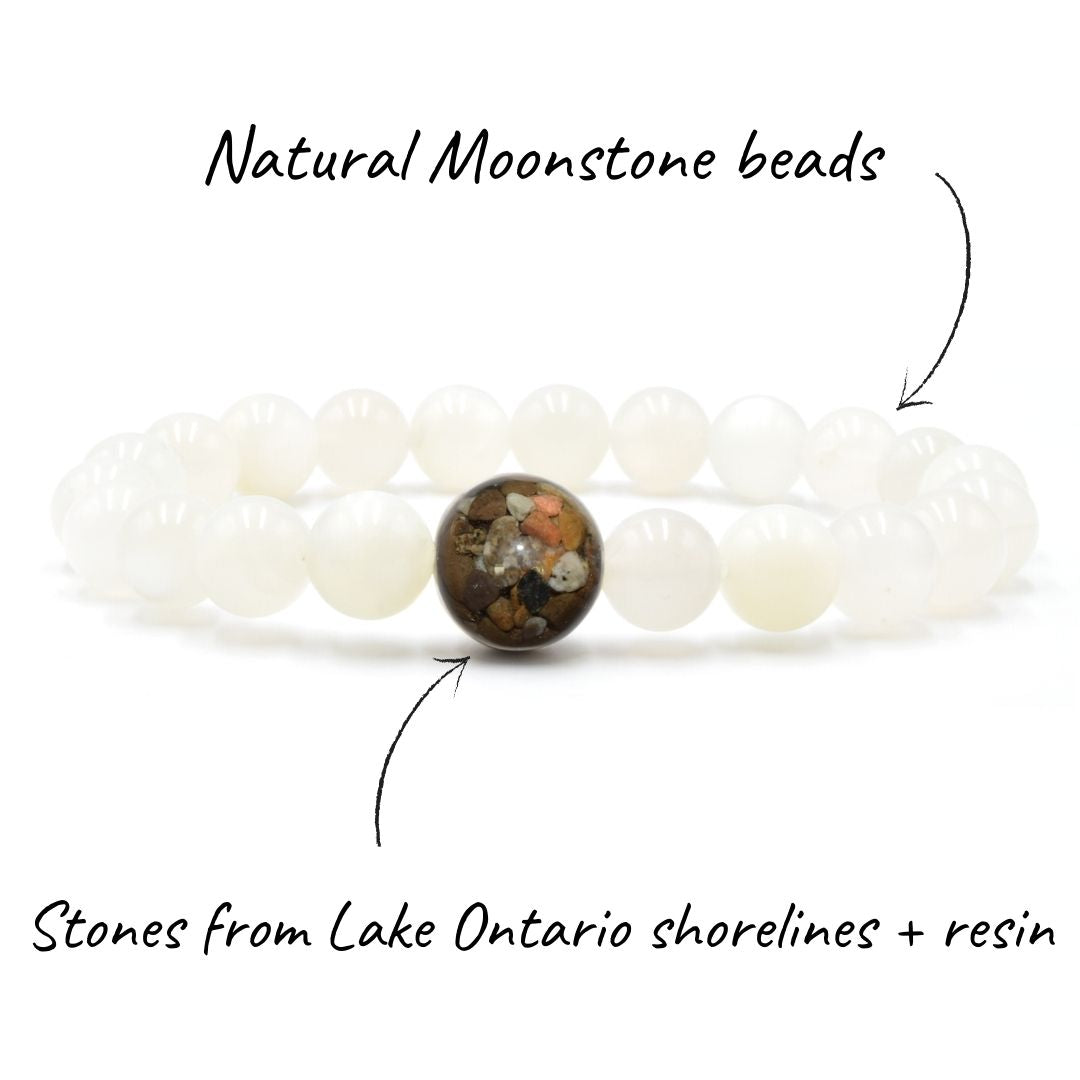 Each bracelet in our Lake Ontario Collection features a handcrafted "Earth Bead" made with stones and shells collected from Lake Ontario shorelines.