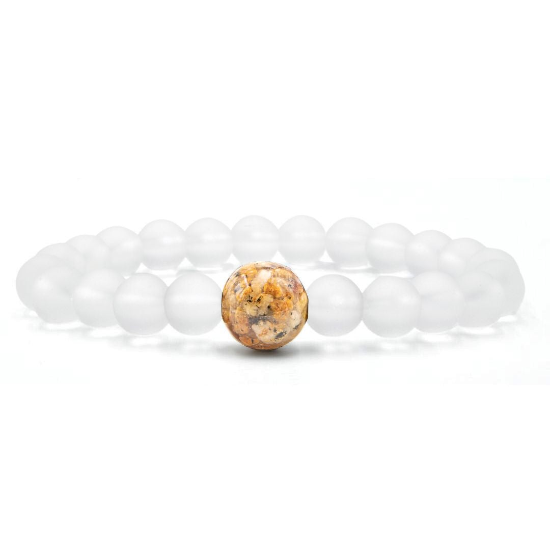 Every Homes Bracelet features an "Earth Bead," made by molding earth materials like stones, sand, shells, or ocean salt, with high quality resin. Each bead is then individually sanded and polished and prepped to be strung onto the bracelet.
