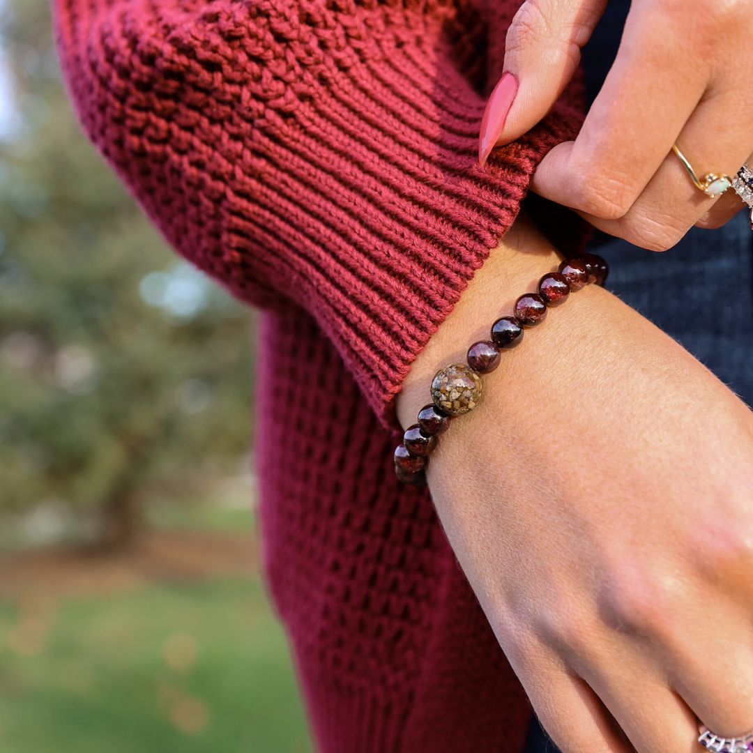 - Surrounding beads (8mm) made of natural Garnet stone*