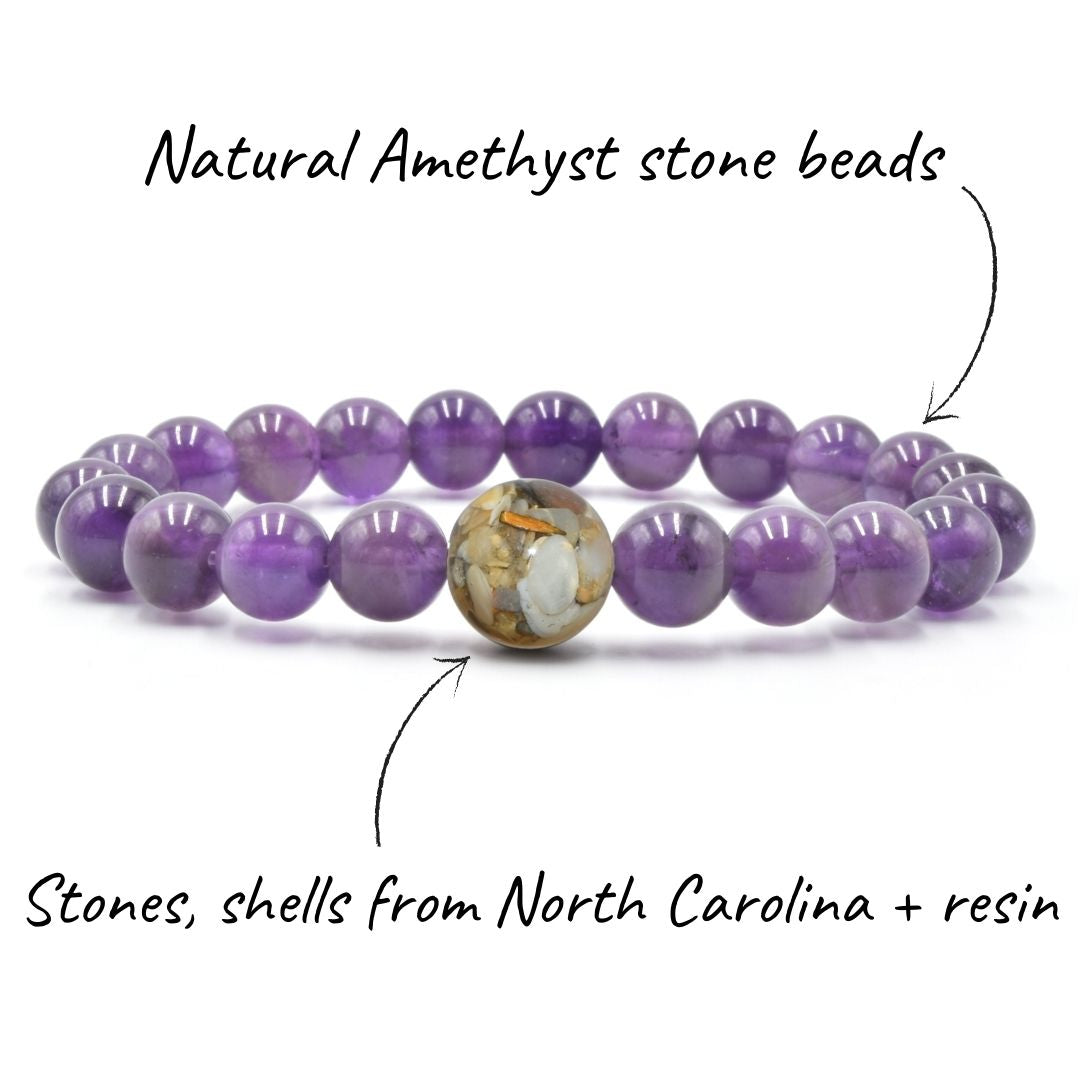 The larger “Earth Bead” of this bracelet contains stones collected by hand from throughout the state of North Carolina. Each Earth Bead is hand-crafted in our small shop in Michigan, a process which takes 50+ hours per bead. Each Earth Bead is literally one-of-a-kind.